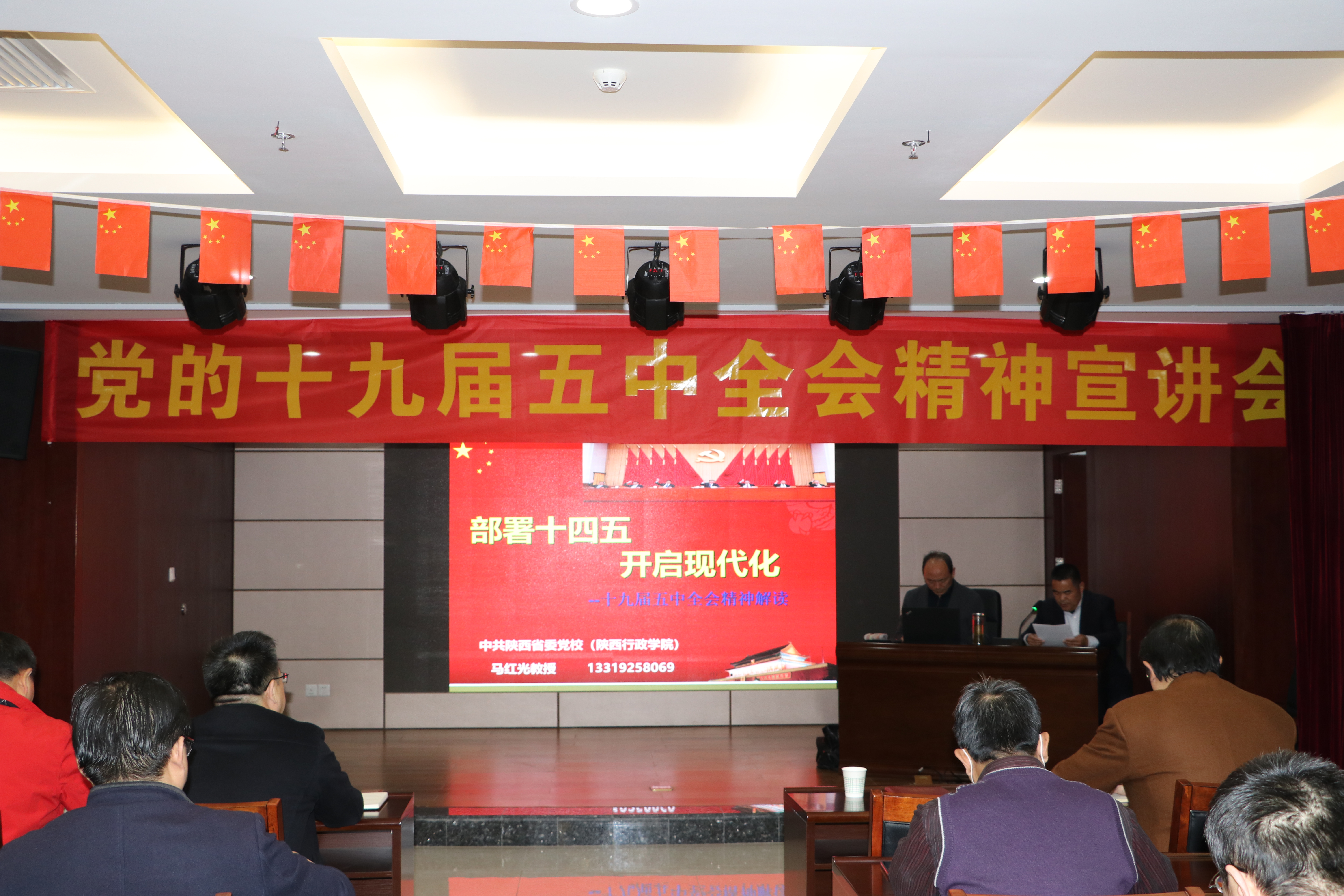 講座邀請(qǐng)陜西省委黨校管理學(xué)部經(jīng)濟(jì)學(xué)專家馬紅光教授從十九屆五中全會(huì)意義與《建議》形成、全面建成小康社會(huì),開啟現(xiàn)代化建設(shè)新征程、“十四五”經(jīng)濟(jì)社會(huì)發(fā)展指導(dǎo)方針主要目標(biāo)、“十四五”經(jīng)濟(jì)社會(huì)發(fā)展重點(diǎn)任務(wù)、團(tuán)結(jié)起來,為實(shí)現(xiàn)規(guī)劃目標(biāo)奮斗等方面對(duì)十九屆五中全會(huì)精神進(jìn)行全面的講解學(xué)習(xí)。